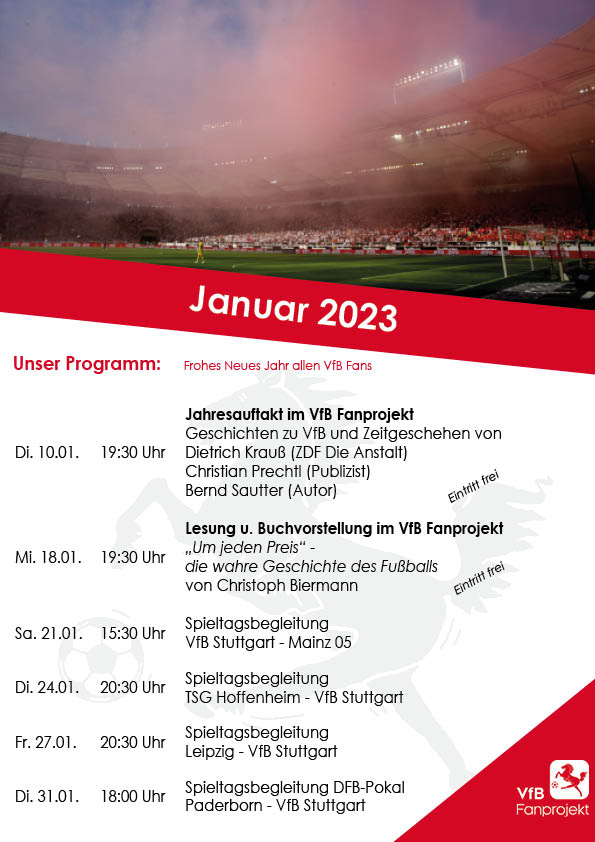 Allgemein Monatsübersicht Januar VonJannis 3. Januar 2023 Liebe VfB Fans, wir wünschen euch einen guten Start…
