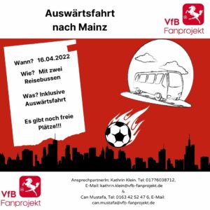 Liebe VfB’ler*innen, das VfB Fanprojekt und die VfB Behindertenfanbetreuung organisieren nach Mainz eine inklusive Auswärtsfahrt. Fahrtkosten 10 Euro + Sitzplatzticket 16 Euro. Wenn du rechtzeitig eine E-Mail mit deinem Namen,…