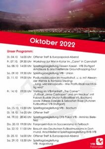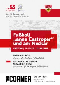 Hallo zusammen, am 14.10.2022 findet gemeinsam mit den Fanbeuaftragten des VfB um 19 Uhr eine Veranstaltung im VfB Fantreff „The Corner“ in Cannstatt statt. Dabei gewähren uns die jeweiligen Autoren…