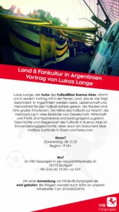 Veranstaltung „Land & Fankultur in Argentinien“ am 08.12.2022